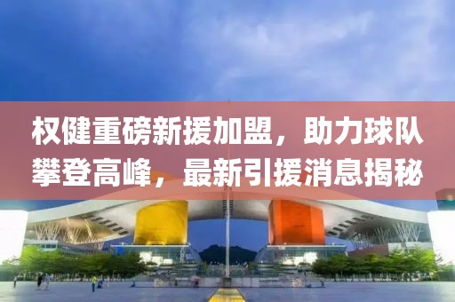 權健足球俱樂部迎來重磅新援加盟,最新引援消息備受關注。新援的加盟將助力球隊再攀高峰,為球隊的實力注入新的活力。這一重要引援對于權健足球隊的未來發展具有重要意義,期待新援能夠在比賽中展現出出色的表現,為球隊帶來更多的勝利和榮譽。