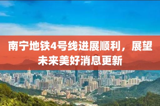 南寧地鐵4號線的建設進展順利,未來展望美好,該線路的建設將極大地提升南寧市的交通效率、經濟發展、城市空間拓展以及市民生活質量,讓我們共同期待南寧地鐵4號線的建成通車,為這座美麗的城市帶來更多的繁榮與活力。