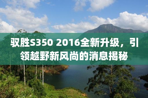 馭勝S350 2016全新升級,引領越野新風尚。最新消息顯示,馭勝S350進行了全面改進,以更高的性能、更先進的科技、更豪華的內飾和更出色的越野能力,展現出強大的競爭力。這款車型以其卓越的越野性能和時尚的設計贏得了消費者的青睞,成為市場上備受矚目的車型之一。全新升級的馭勝S350將繼續滿足消費者的需求,并引領越野車的潮流趨勢。